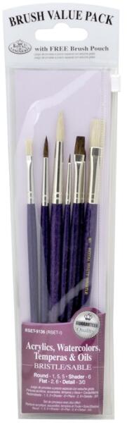 Royal & Langnickel coboly ecsetkészlet, ideális akril, akvarell, tempera és olajfestékeket használó művészek számára. Kényelmes fa fogantyúval, praktikus cipzáras tokkal.