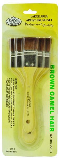 Royal & Langnickel ecsetkszletVászon átkenésre és nagy felületeken való festésre alkalmas. Barna teve szőr lakkozatlan fa fogó és alumínium szálfogó. A készlet 3 lapos ecsetet tartalmaz. Szélesség 2,5cm, 5cm, 7,6cm. Garantált amerikai minőség!