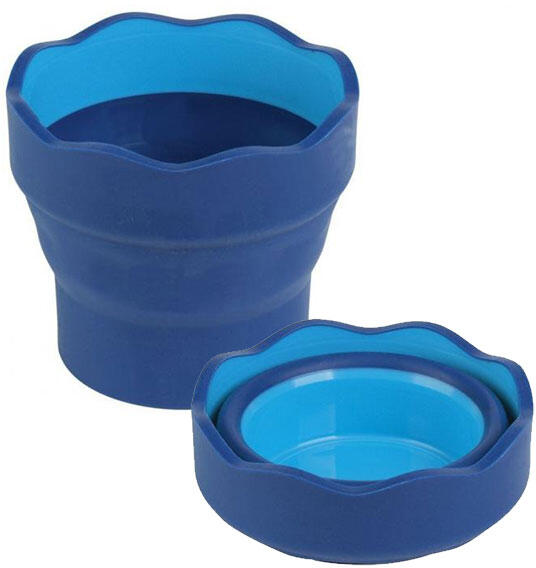 Különleges vizes tálka festéshez, a Faber Castell-től! A csúszásgátló borítású ecsetmosó pohár könnyen összecsukható, így akár kisebb mennyiségű víz is tárolható benne. Az edény hullámos szélén könnyen tárolhatod az ecsetet is, mely nem fog legurulni róla.