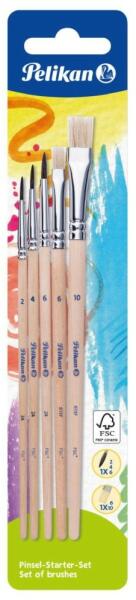 Ecset kezdő szett 3 különböző méretű, 2-es, 4-es és 6-os szőrecsettel, valamint 2 különböző méretű, 6-os és 10-es sörteecsettel. A fa nyél 100%-ban FSC minősítésű fából készül.