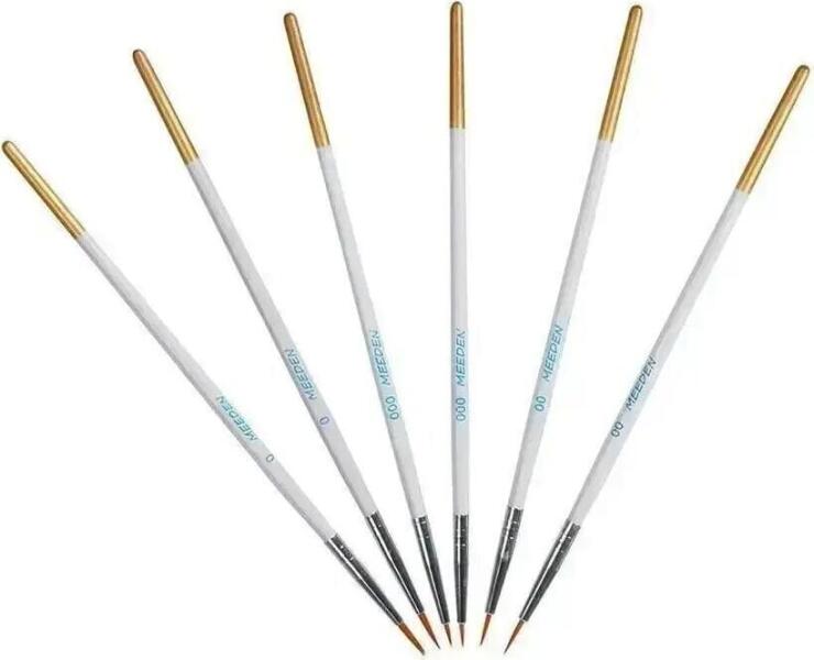 Ez egy automatizált szoftver általi fordítás:Hat miniatűr művészeti ecset. Az ecseteket részletes festéshez tervezték, és a legjobb minőségű szintetikus sörtékkel rendelkeznek. Puha, rugalmas és erős. Minden csomag hat ecsetet tartalmaz: két 0, két 2/0 és két 3/0 méretű ecsetet. A kényelmes, tartós, rövid nyelek kiváló irányíthatóságot biztosítanak akril-, víz- vagy olajfestékkel való festéskor. Nagy pontosságot biztosítanak az apró részletekhez. A varrat nélküli nikkelből készült vasalatok nem rozsdásodnak vagy repedeznek. Kétszeresen krimpeltek a hosszabb élettartam érdekében, és többszöri használat után sem lazulnak meg. Az ecset sörtéi épek maradnak, és festés közben nem terjeszkednek vagy tágulnak. Ezek az ecsetek alkalmasak akrilfestékekhez, akvarellfestékekhez, miniatűr művészethez, arcfestéshez, miniatűrökhöz, részletekhez, kézműves művészethez, modellezéshez. Az ecsetek könnyen tisztíthatók és nem hullatják a sörtéket. Nagyszerű készlet művészeknek, diákoknak, tinédzsereknek, gyerekeknek, kezdőknek vagy bárkinek, aki szeret festeni.