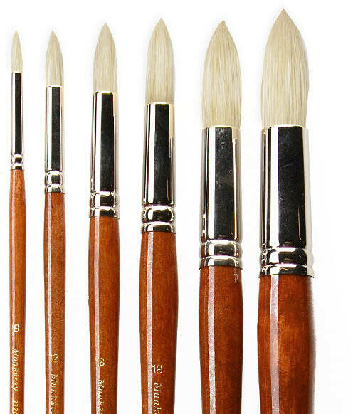 Munkácsy kerek (tűhegyű) sörteecset, hosszú lakkozott fa nyéllel. Olajfestéshez ajánljuk elsősorban. Méret: 141 db