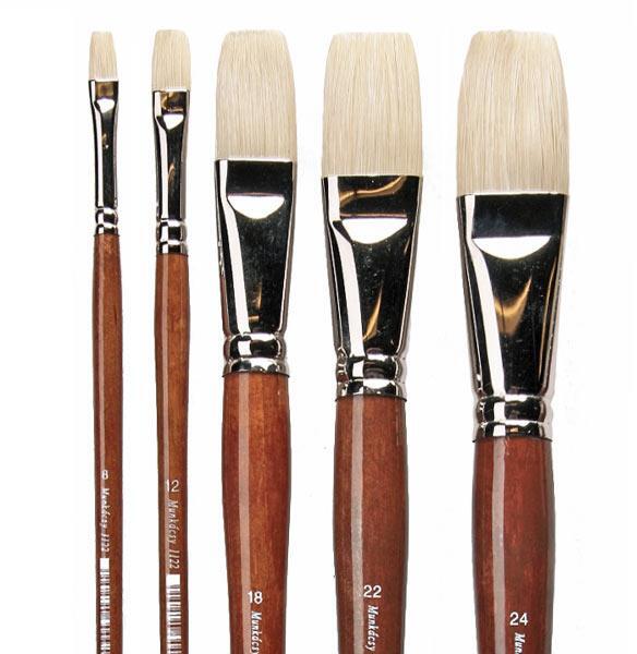 Munkácsy lapos sörteecset, hosszú lakkozott fa nyéllel. Olajfest ékhez ajánljuk elsősorban. Méret: 281 db