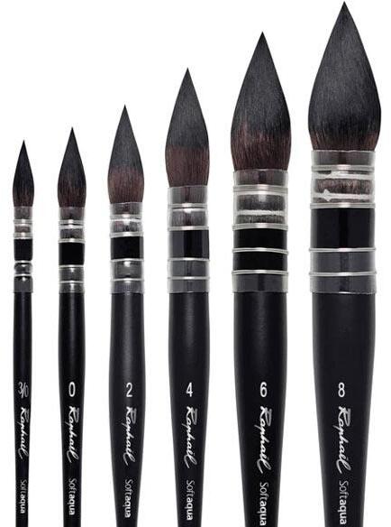 Raphael SoftAqua 805 szintetikus hegyes, kerek ecset Sp eciális szintetikus rostszálakból készült prémium minőségű akvarellecset. A szőrszálak kétszer annyi nedvességet tudnak magukba szívni és megtartani, mint a hagyományos mókusszőr ecsetek. Tartósságuk, használhatóságuk egyedülálló. Az ecset rövid fekete nyéllel készül. Az ecsetet akvarellfestéshez ajánljuk. Méret: 041 db