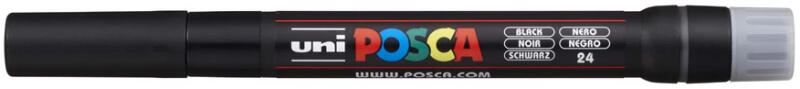 A Posca egy egyedülálló vízbázisú, pigment tintájú, UV és vízálló marker, amelyet a legtöbb felületen tudunk használni. A marker fejében egy speciális rostszál található, amely rendkívüli rugalmasságot biztosít. használatakor ecsetszerű élményt ad, használatakor lágy írást tudunk elérni. Katalóguskód: 57222